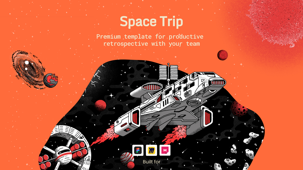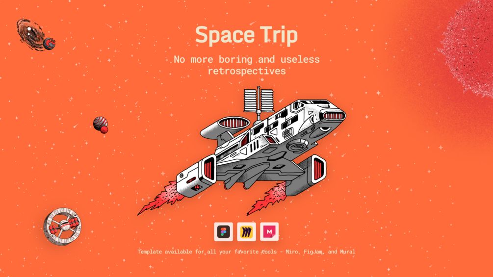 Space trip Retrospective template for Miro, FigJam and Mural
